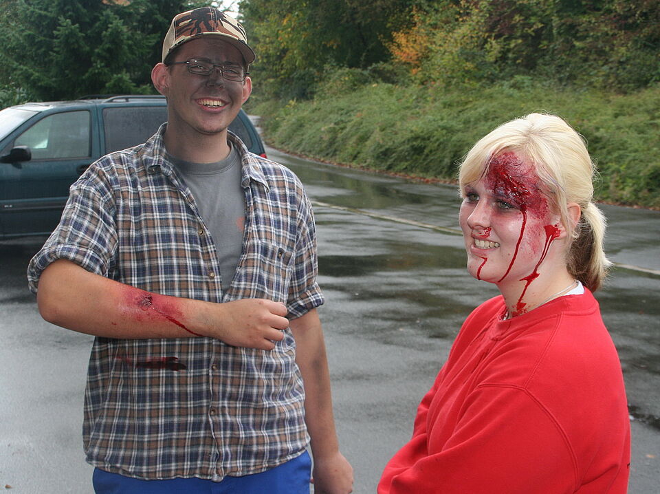 Auch bei dieser Übung des Rettungsdienstes im Kreis Euskirchen wurde wieder einmal klar, wie wichtig eine gute Darstellung der Verletzungen ist. So bekamen die eingesetzten Helfer des Roten Kreuzes, des Malteser-Hilfsdienstes, des Technischen Hilfswerks und der Feuerwehr ein optisch täuschend echtes Katastrophenbild verpasst und damit eine gute Voraussetzung für den Veklauf der gesamten Übung.