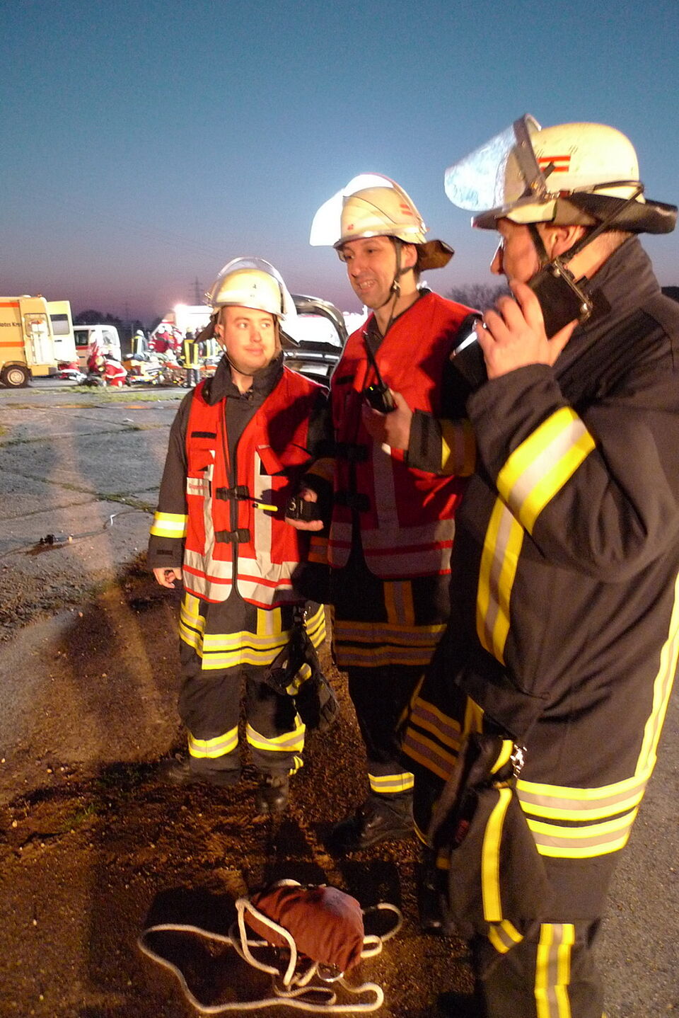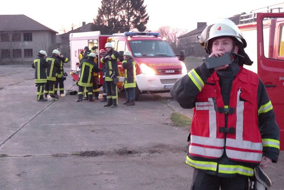 Der Zugführer des Löschzuges, Johannes Gebertz, ließ umgehend das Alarmstichwort für die Feuerwehr erhöhen und forderte weitere Unterstützung an. Auch der Rettungsdienst wurde aufgrund der Rückmeldung des ersten am vermeintlichen Unfallort eintreffenden Fahrzeuges verstärkt.