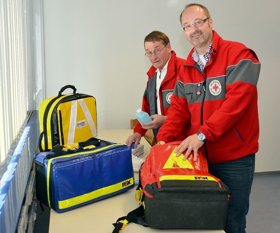 Foto: Felix Kern/pp/Agentur ProfiPress | In ihrem Element: Rolf Klöcker und Herbert Schmitz mit medizinischer Versorgung im eigens dafür eingerichteten Raum.