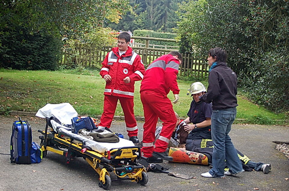 Die Zusammenarbeit zwischen Feuerwehr und Rotem Kreuz hatte wieder hervorragend funktioniert -ein Ergebnis der zahlreichen gemeinsamen Übungen.