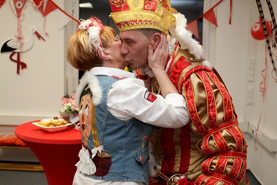 Die Euskirchener Blutspendebeauftragte und stellvertretende Kreisverbandsvorsitzende Edeltraud Engelen nutzt diesen Platz als Tollitätengalerie. Und seit der Session 2006/07, als Prinz Andreas II. (Sürth) als erster amtierender Oberjeck offiziell Blut spendete, sind einige Bilder hinzugekommen, die Engelen von den Regenten überreicht bekommt. Denn nicht nur die Tollität aus der Kernstadt kommt vorbei, sondern auch die Dörfer rund um Euskirchen unterstützten das Rote Kreuz.