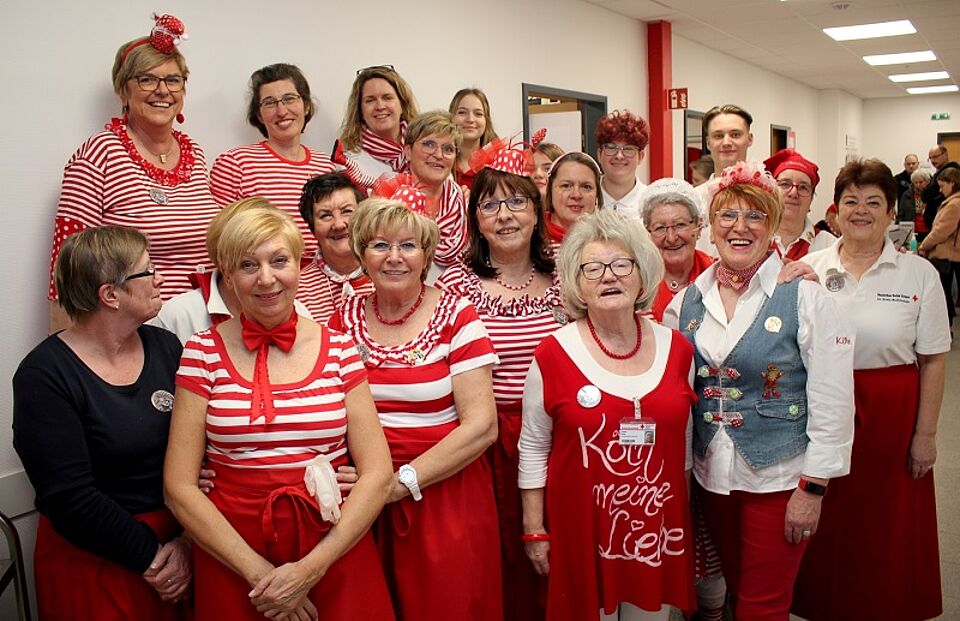 Ohne das „Engelchen“ und ihr Team von 15 bis 20 Helferinnen und Helfern ist die Blutspende überhaupt nicht denkbar. Bereits am Vorabend richtet Edeltraud Engelen den großen Seminarraum zum Speisesaal um und dekoriert ihn karnevalistisch. Ab dem späten Vormittag am Blutspendetag selbst (die Veranstaltung beginnt um 15.30 Uhr) beginnt das Team mit den Vorbereitungen.