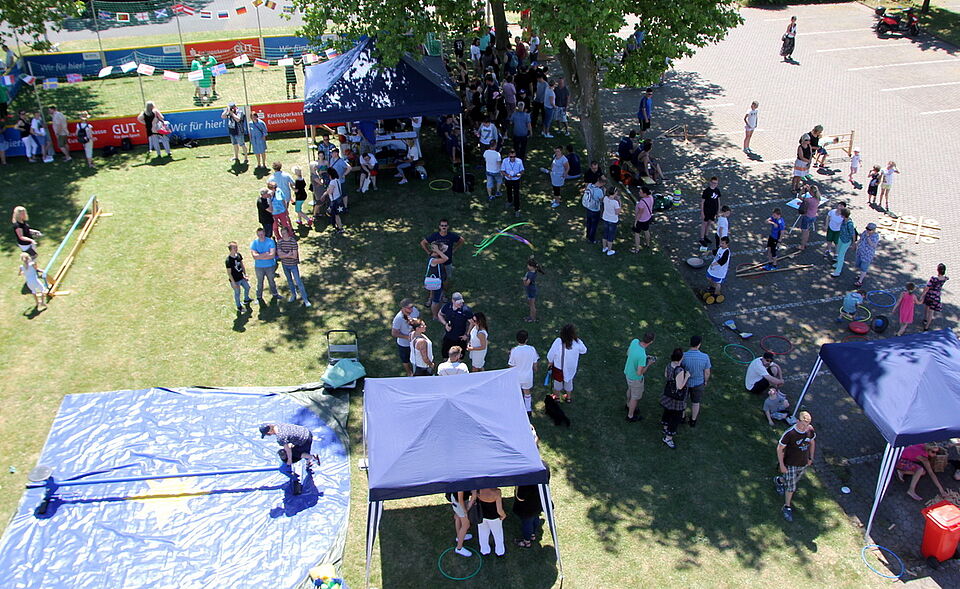 Das ist auch das Prinzip der beliebten Veranstaltung, die nun zum elften Mal vor dem Rotkreuzzentrum hinter dem Kreishaus in Euskirchen über die Bühne ging. Hier wird jeder gleich behandelt, der „Tag der Begegnung“ ist gelebte Inklusion und Integration. Hier balancieren Menschen mit Down-Syndrom ebenso über ein gespanntes Seil, neumodisch Slackline genannt, wie Menschen ohne Behinderung. Hier essen Menschen, gleich welcher Herkunft, gemeinsam unter dem Dach des Rotkreuzzentrums Pommes und Waffeln. Hier hat man gemeinsam Spaß, man sonnt sich, man erholt sich, jeder ist, wie Simon Jägersküpper es gesagt hat, gleich.