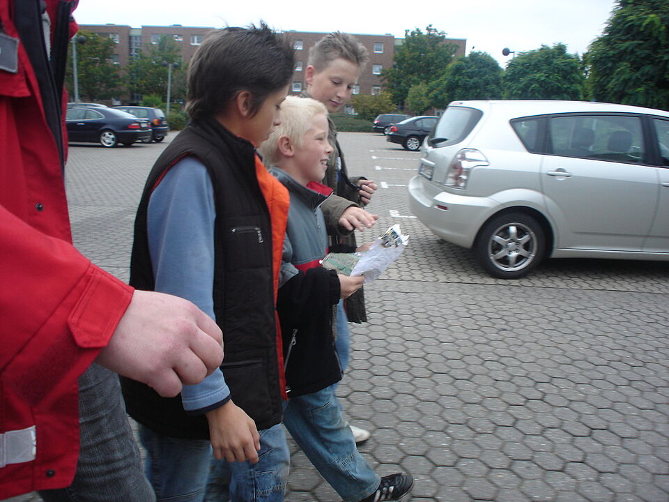 Bild JRK EU | Rund um die Kreisverwaltung folgen die Kinder ihrer Schatzkarte.