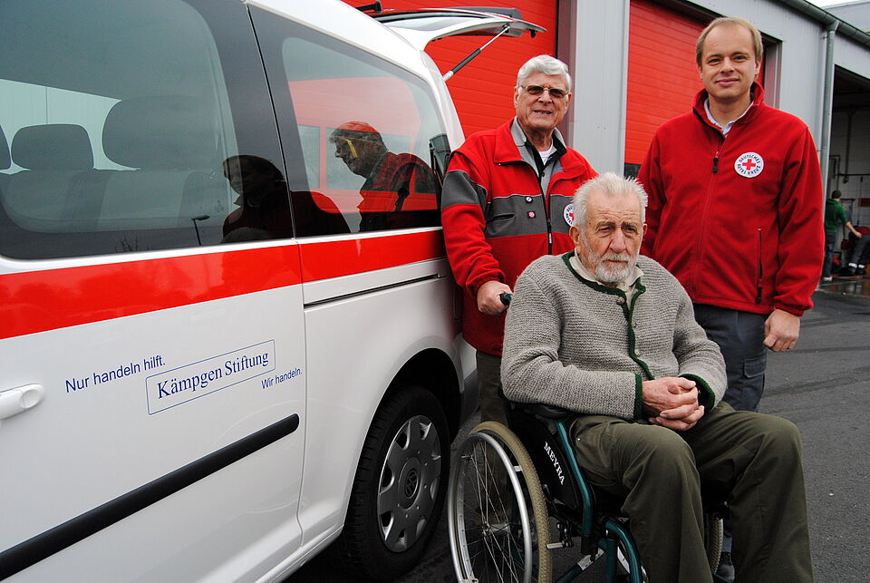 Euskirchen – Ob Arztbesuch, Familientreffen oder Theaterbesuch: Für Menschen, die auf einen Rollstuhl angewiesen sind, können solche Unternehmungen mit unüberwindbaren Hindernissen verbunden sein. Der Behindertenfahrdienst des Rotkreuz-Kreisverbandes Euskirchen, der in solchen Fällen einspringen kann, erhielt jetzt eine Spende in Höhe von 15.000 Euro der Kämpgen-Stiftung. „Mit diesem ‚Zuschuss‘ konnten wir einen VW Caddy in Maxi-Version anschaffen“, freuten sich Fahrdienstleiter Thomas Heinen und Bereichsleiter Soziales Bodo Froebus, die den Zuwachs der Rotkreuz-Flotte nun der Öffentlichkeit präsentierten.