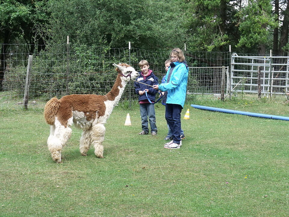 Einer dieser vielen Ausflüge, die zum Programm gehören, führt die Kinder hautnah zu richtigen Lamas...