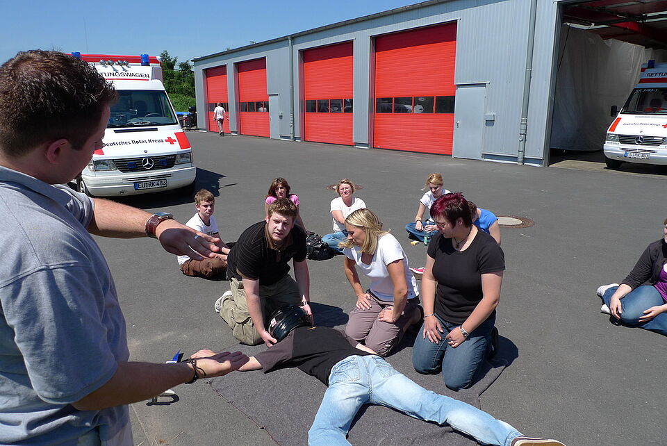 Bild DRK ZR | Alle Teilnehmerinnen und Teilnehmer üben die Maßnahmen, bis alles perfekt klappt.
