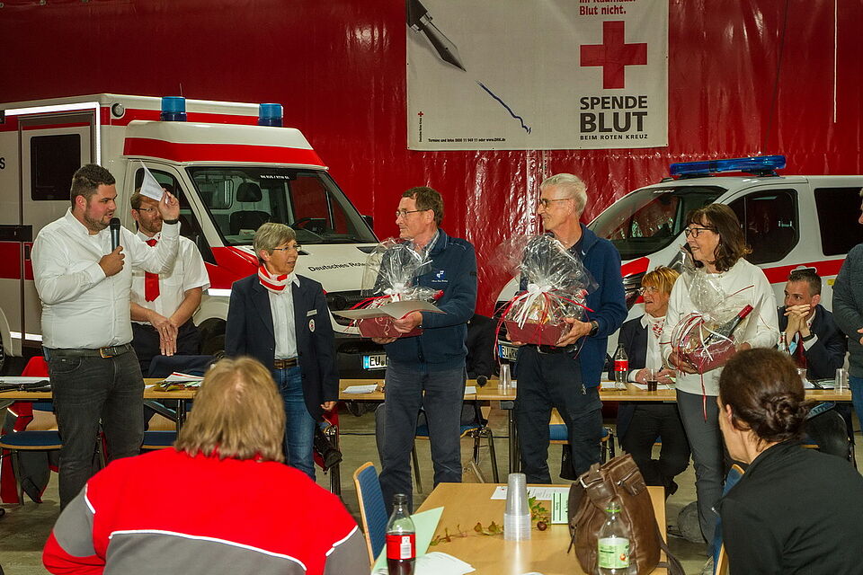 Der Leiter der Euskirchener Rotkreuzgemeinschaft, Daniel Pöthmann, zeigte eindrucksvoll, dass die Rotkreuzarbeit in der Kreisstadt Euskirchen funktioniert. Neben einigen ungeplanten Einsätzen im Bereich Verpflegung und Rettungsdienst hat die Bereitschaft auch beim Ablauf der Blutspende-Termine unterstützt. Erfreulich zu sehen: Die Anzahl der Blutspender im Stadtgebiet Euskirchen steigt wieder leicht an.