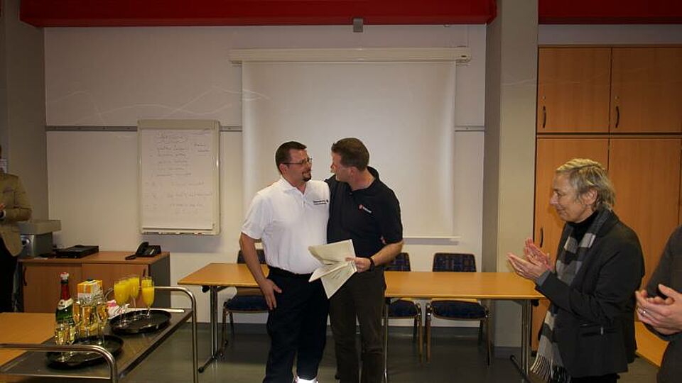 Dr. Gisela Neff, die leitende Notärztin des Kreises Euskirchen gratulierte ihren Kollegen herzlich zur bestandenen Prüfung.