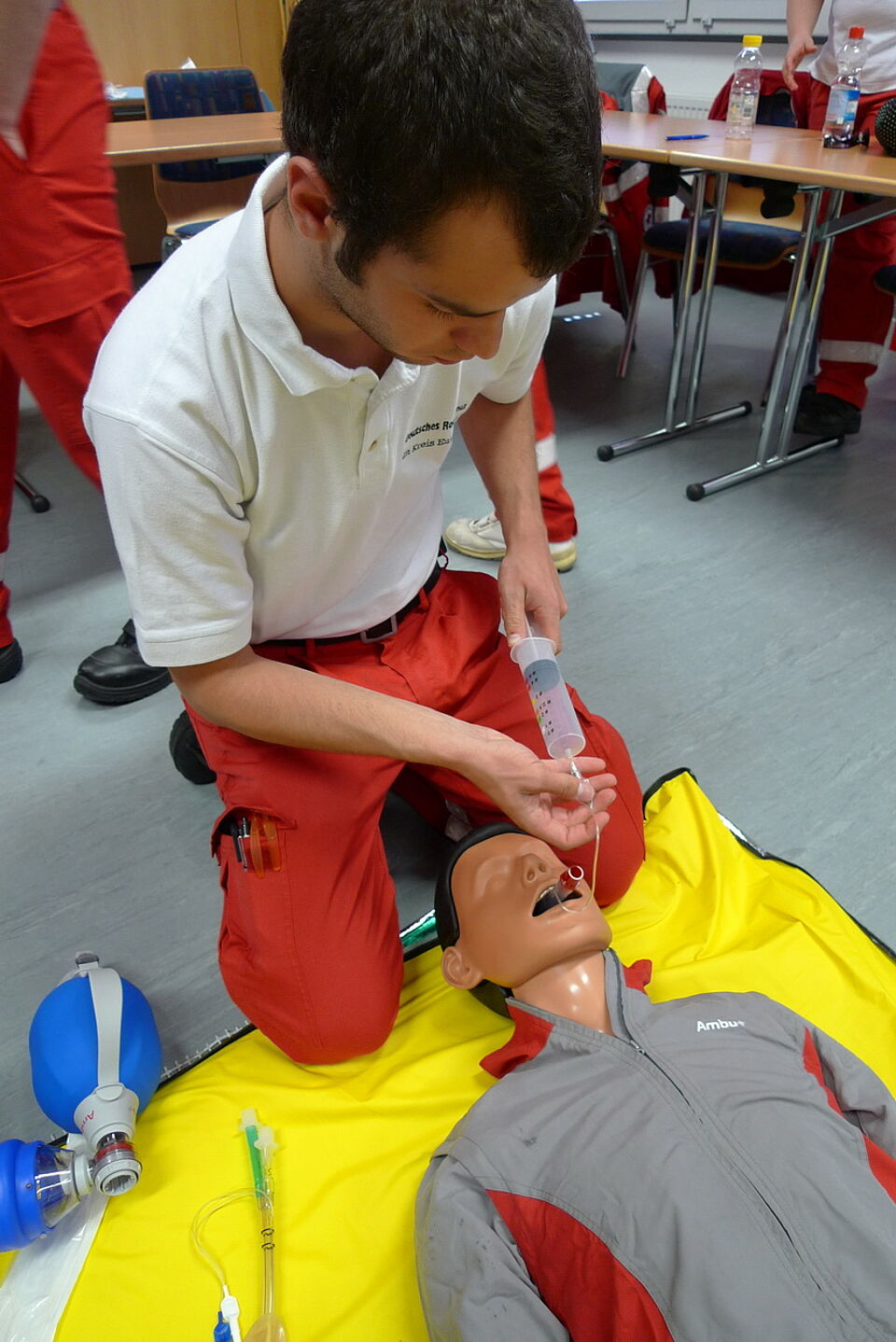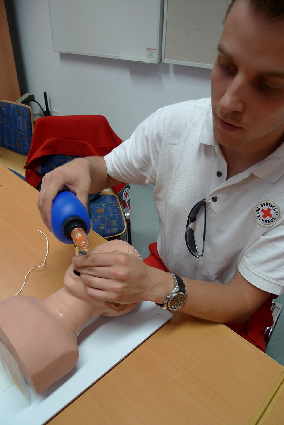 Bild DRK ZR |Die Intubation, "das Einführen eines Schlauches in die Luftröhre", konnte an kleinen Stationen trainiert werden