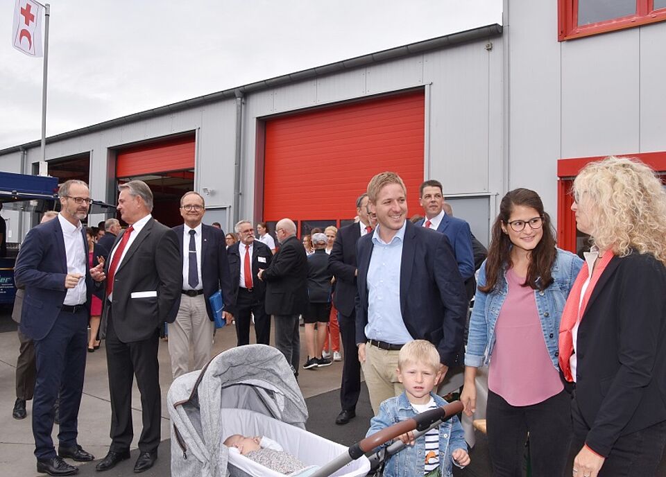 Etwa anderthalb Jahre dauerte die Planungs- und Bauzeit des Anbaus der Fahrzeug- und Materialhallen sowie des Verwaltungstraktes inklusive der Renovierung im bestehenden Gebäude. „So schnell werden wir beim geplanten Kreishaus-Anbau nicht sein“, scherzte Landrat Günter Rosenke, der sich sehr über die gute Nachbarschaft und hervorragende Zusammenarbeit zwischen Kreis und Rotem Kreuz freute.