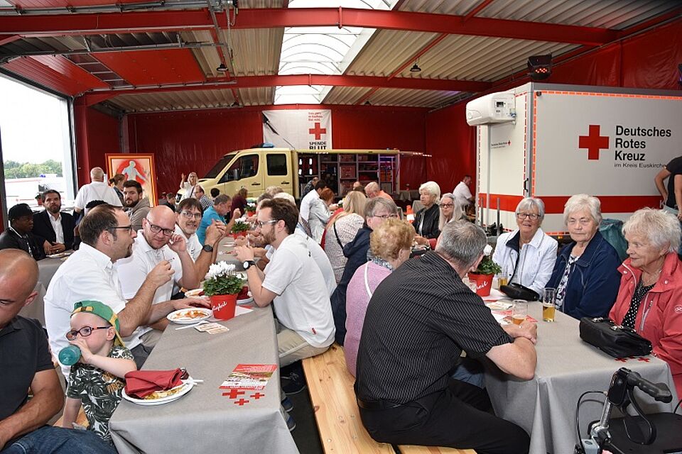 „Rolf Klöcker nutzt jede Chance, das Rote Kreuz zu festigen und zu erweitern“, lobte Landrat Günter Rosenke während seiner Ansprache. Deshalb sei beim Neubau auch bereits von der Planerin Sabrina Höver berücksichtigt worden, dass man das Gebäude sowohl durch Aufstockung in die Höhe als auch durch weitere Anbauten Richtung Jülicher Ring erweitern könnte.