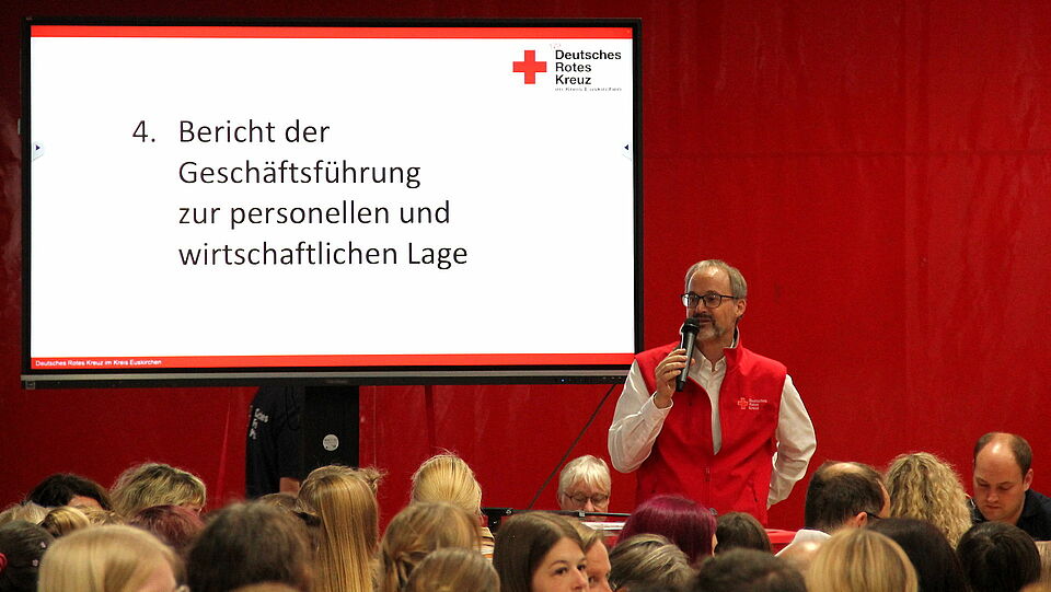 Um möglichst viele Rotkreuzler zu erreichen hatte man den Gesundheitstag im Anschluss an die Betriebsversammlung im Rotkreuzzentrum Euskirchen/Eifel veranstaltet. Rund 300 der 900 hauptamtlich Beschäftigten waren zur Betriebsversammlung gekommen und bekamen von Geschäftsführung und Vorstand des Kreisverbandes einen Überblick über die Geschehnisse des vergangenen Jahres sowie die Pläne für das kommende Jahr.