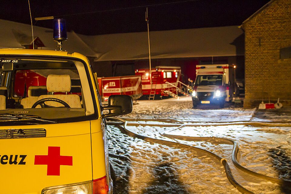 Euskirchen - Zum gestrigen Scheunenbrand in KEssenich wurden neben den über 100 Kräften der Feuerwehr auch die ehrenamtlichen Einsatzkräfte des Roten Kreuzes in Euskirchen alamriert.
