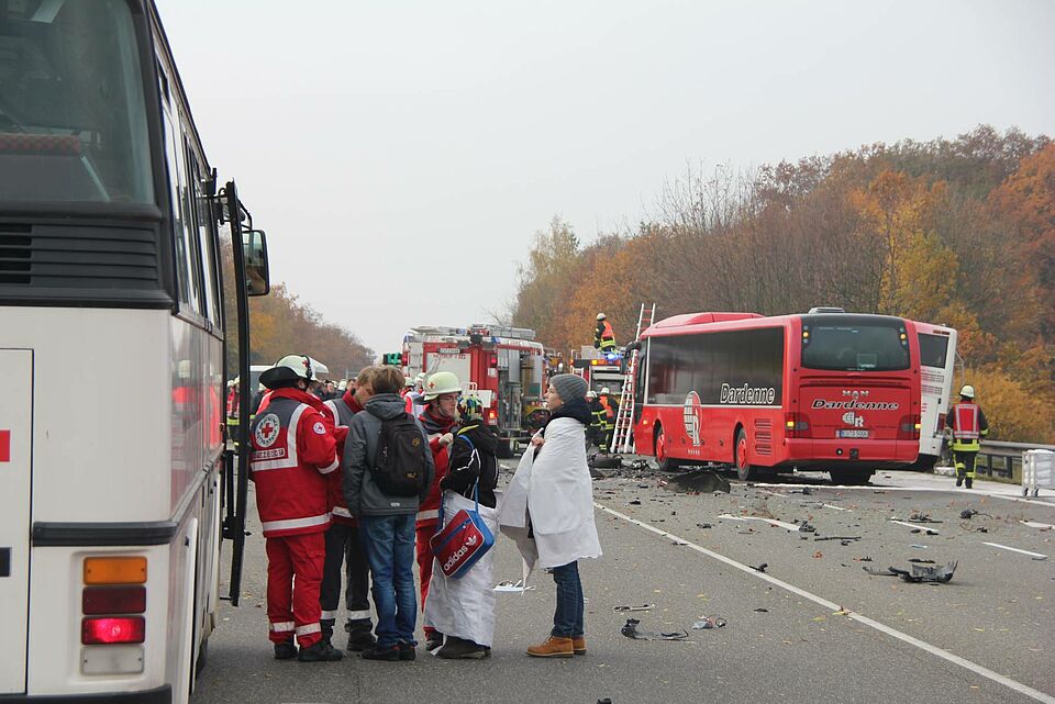 "...meine Tochter war gestern von dem schweren Verkehrsunfall mit den zwei Reisebussen betroffen.