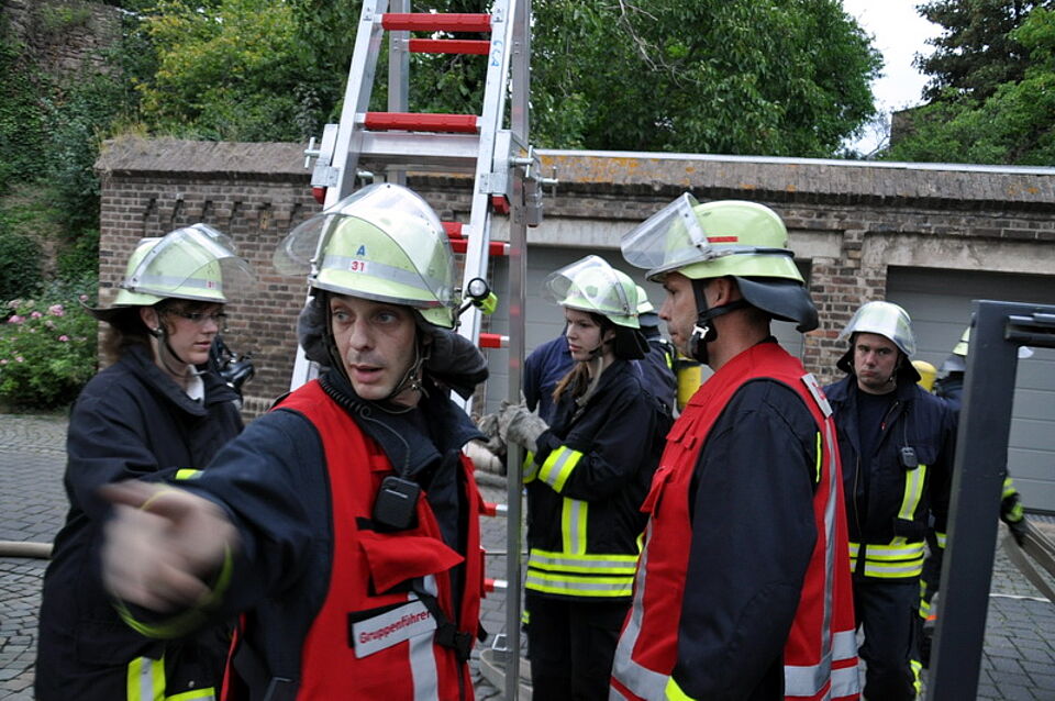 Euskirchen-Zentrum - Eine imposante Übung auf dem Gelände der Euskirchener Kreissparkasse am Kirchwall hatten sich die Übungsleiter der Feuerwehr einfallen lassen. Normalerweise ist der Löschzug III der Euskirchener Wehr auf dem Gebiet Kirchheim, Flamersheim, Niederkastenholz und Palmersheim im Einsatz, doch am vergangenen Freitag mussten die Einsatzkräfte ins Euskirchener Stadtgebiet "ausrücken".