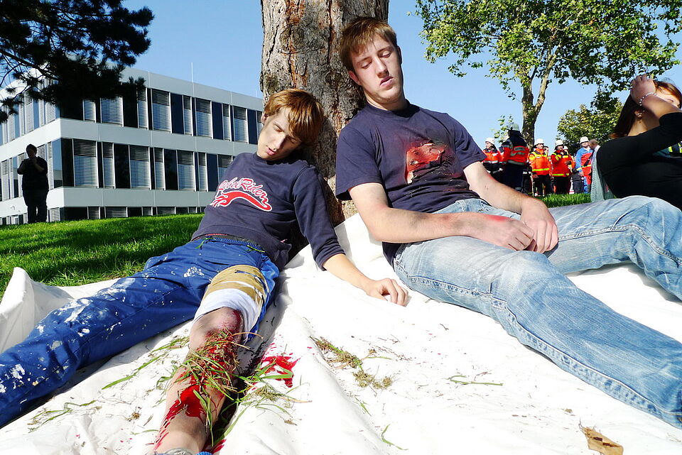 Bei der Übung für Leitende Notärzte und Organisatorischen Leiter waren rund 60 Mimen beteiligt, die von Feuerwehr, Malteser, Technisches Hilfswerk und dem Deutschen Roten Kreuz in guter Zusammenarbeit "versorgt" wurden.en.