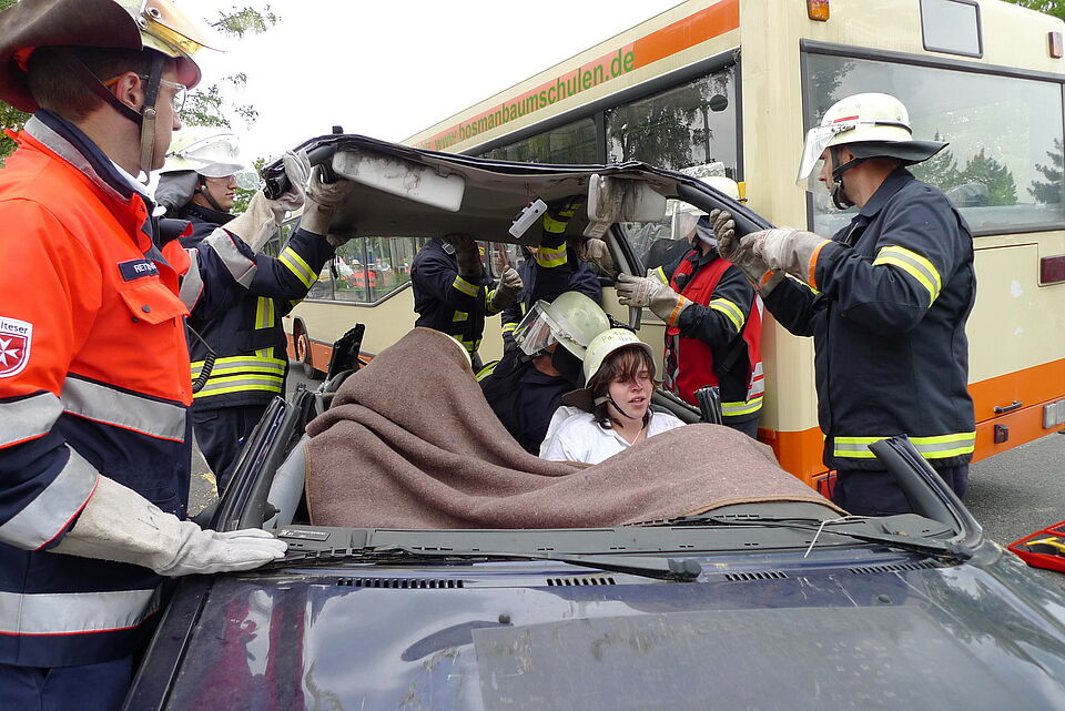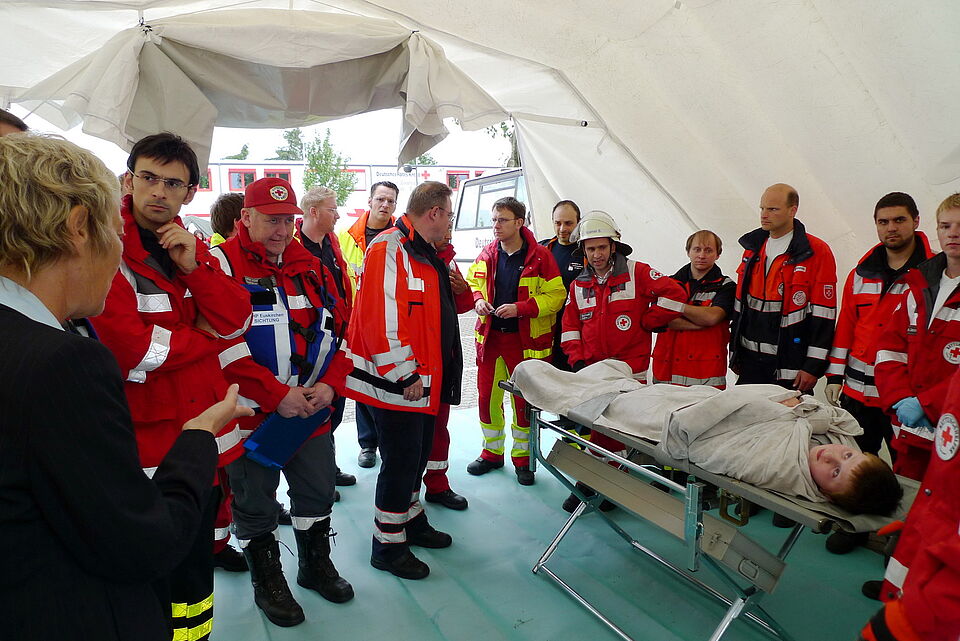 Viele "Verletzte" befanden sich am Sonntag auf dem Gelände zwischen der Kreisverwaltung und dem Rotkreuz-Zentrum. "Verkehrsunfall mit zwei PKW und einem Bus!" - so lautete das Szenario für die Großübung der Leitenden Notärzte (LNA-Übung)...