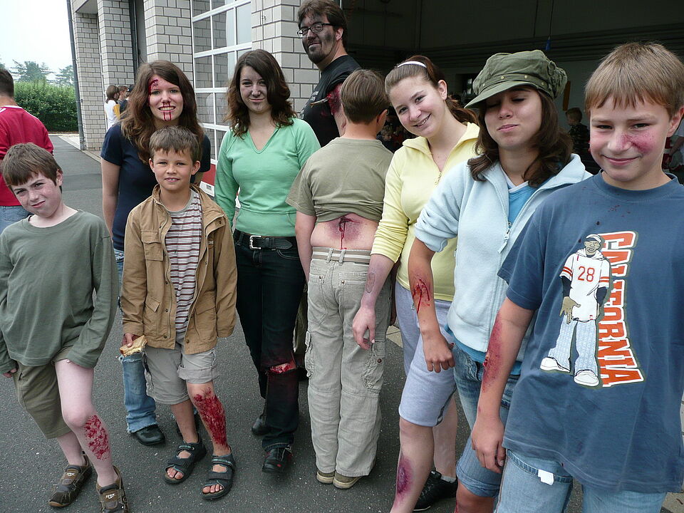 Nach einer fast dreistündigen Arbeit der (RUD) Gruppe waren die Darsteller für die Übung vorbereitet. Sie wurden in den Hintergrund der Übung "eingeweiht" und auf ihre Rolle als Verletztendarsteller vorbreitet.