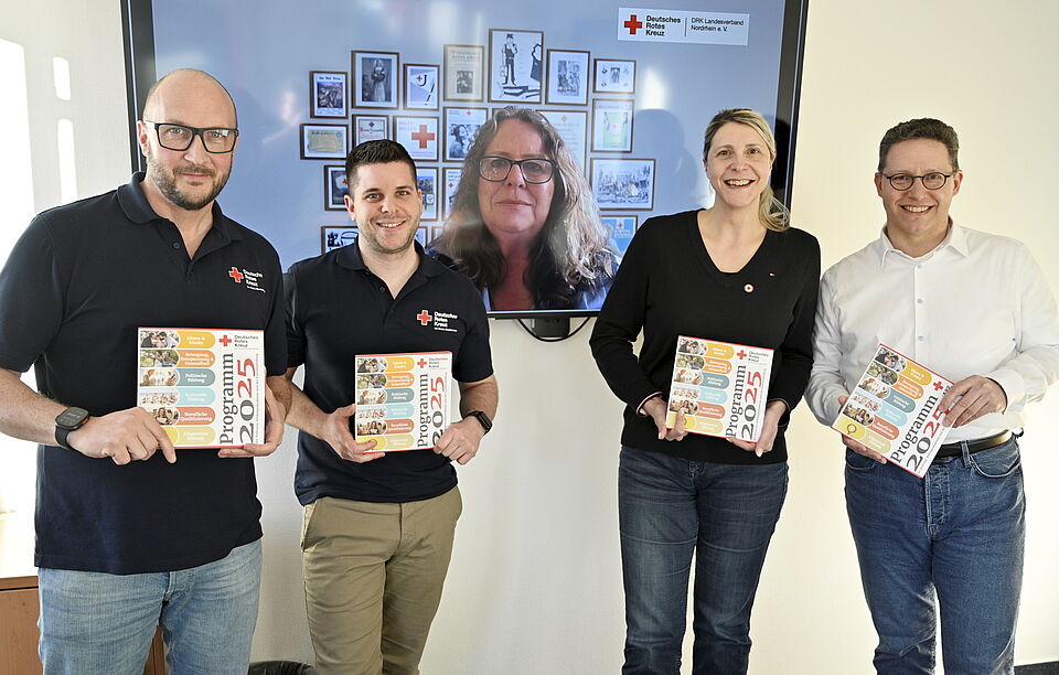 Mitte März trafen sich die „Möglichmacher“ im Rotkreuz Zentrum Euskirchen / Eifel: Jens Pesch, Landesbeauftragter für den Betreuungsdienst im DRK-Landesverband Nordrhein e.V., Simone Pesch, Referentin für Pflege und Bevölkerungsschutz der DRK-Schwesternschaft „Bonn“ e.V., DRK-Kreisbereitschaftsleiter Lars Klein, Gladys Pietz, Referentin für Betreuungsdienst und Psychosoziale Notfallversorgung im DRK-Landesverband Nordrhein e.V., Fachbereichsleiter Patrick Dost und Daniel Larres, Leiter der DRK-Bildungsakademie Euskirchen.