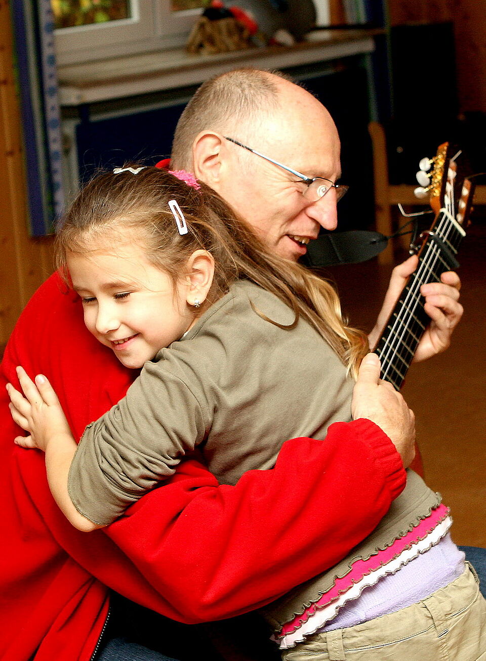 „Wir sind keine ausgebildeten Singpaten, aber wir haben jahrzehntelange Erfahrung beim Singen mit Grundschülern“, berichtet Charlotte Roux-Bücker: „Wir lehnen uns in den Gesangsstunden hier im Kindergarten an das Projekt »Canto elementar« an.“