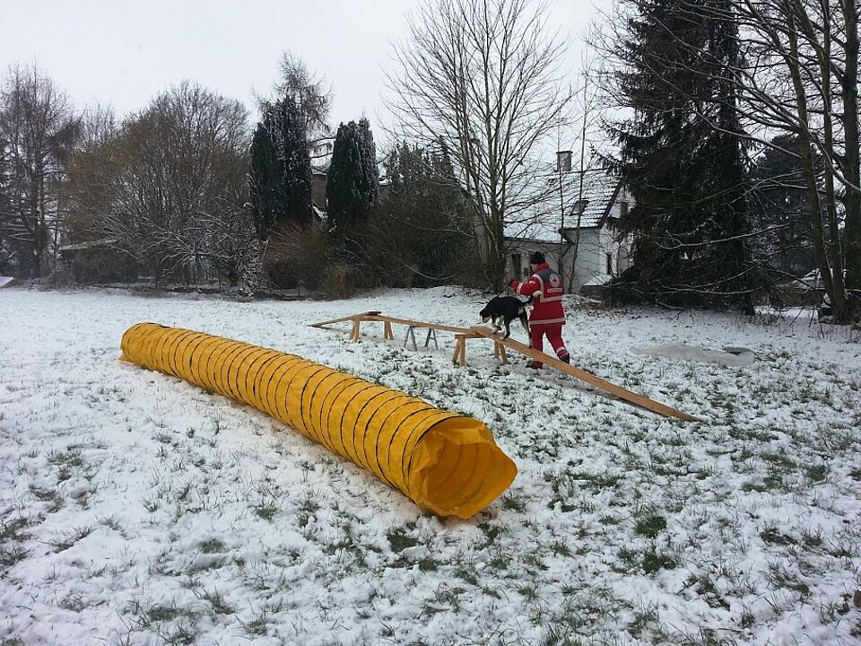 Schließlich darf ein Rettungshund sich später durch nichts irritieren lassen und muss der gestellten Aufgabe unbeirrt nachgehen.