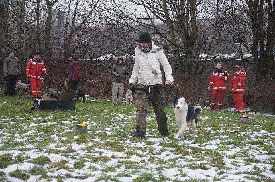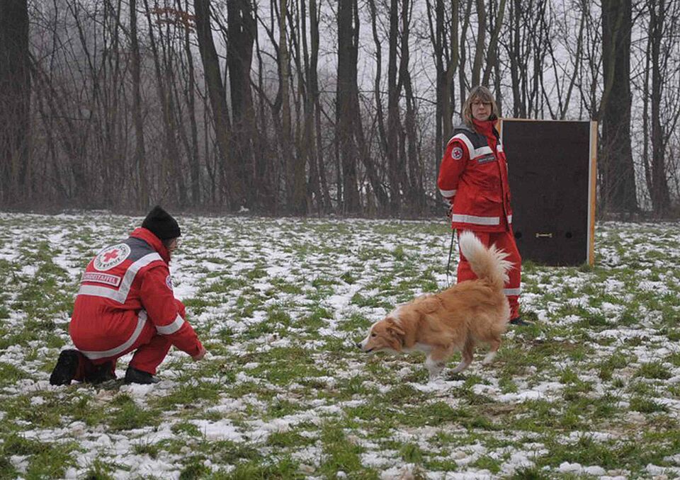 Güdderath – Michael Meertz, der stellvertretende Leiter des Rettungshundewesens im Landesverband Nordrhein des Deutschen Roten Kreuzes (DRK), konnte mehr als zufrieden sein: Der Nachwuchs an Hundeführern in "seinem" DRK-Landesverband ist gesichert. Neun Nachwuchs-Suchhunde waren zum Rettungshunde-Eignungstest zum Katastrophenschutzzentrum in Mönchengladbach-Güdderath angetreten. Das erfreuliche Ergebnis: Alle neun Hunde legten vor den drei Eignungstest-Bewerterinnen, Ingrid Grimm, Ulrike Ernst und Gaby Hüpkes-Meertz, durchweg gute Leistungen ab.