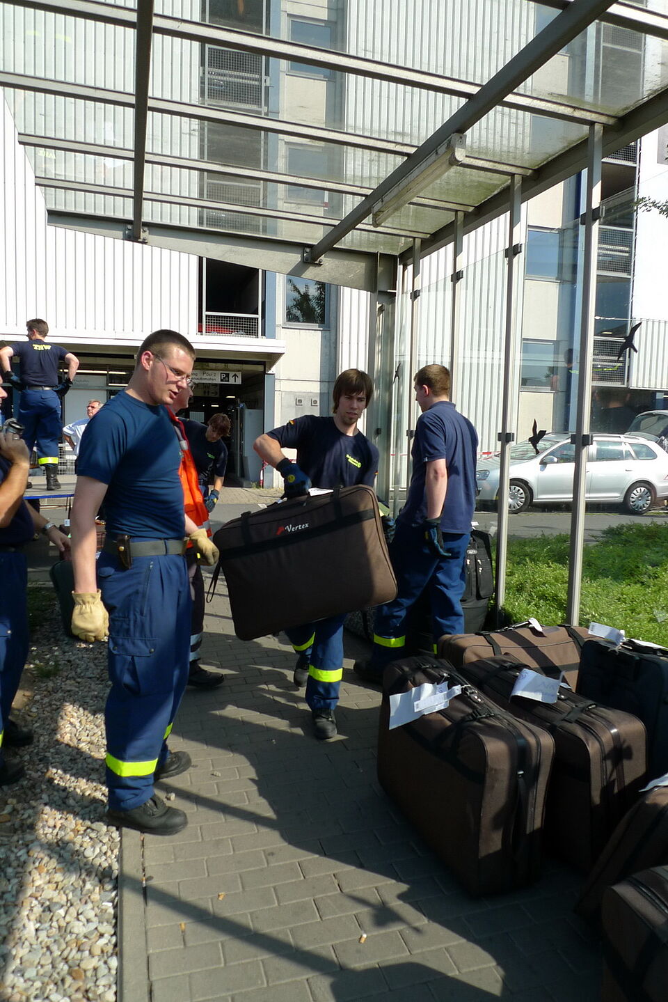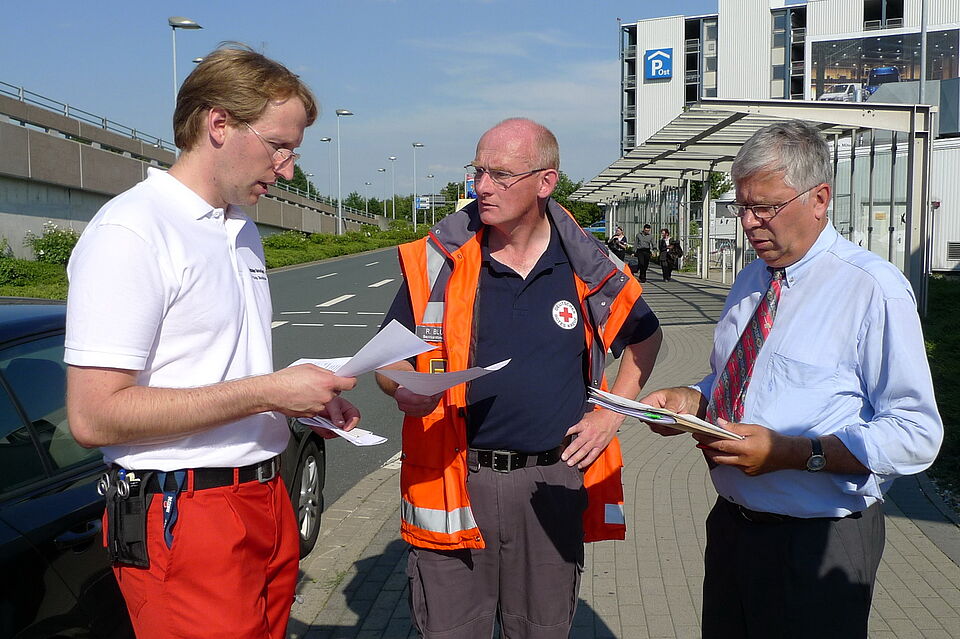 Hannover/ Aachen/ Euskirchen - Am Dienstagmorgen machten sich fünf Rotkreuzler aus dem Kreis Euskirchen auf den Weg nach Hannover, um irakische Flüchtlinge in ihre neue Heimat nach Aachen zu begleiten. Unter Leitung des Mechernicher Rotkreuz-Arztes Georg Grasmeyer waren Manuel Iskra als Rettungssanitäter, André Rarey als Busfahrer und Rolf Zimmermann und Andreas Schwill als Begleiter mit von der Partie.