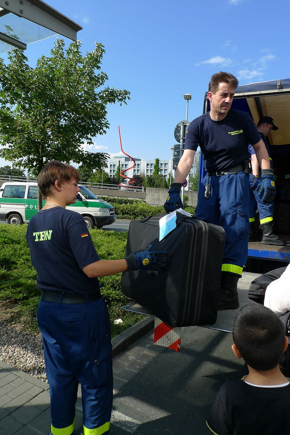 Am Dienstag, den 14. Juli, erreichen 134 irakische Flüchtlinge aus den Flüchtlingslagern in Jordanien und Syrien den Flughafen Hannover. 20 von ihnen werden künftig in Nordrhein-Westfalen leben. Das Rote Kreuz im Kreis Euskirchen begleitete eine große Familie in ihre neue Heimat Aachen.