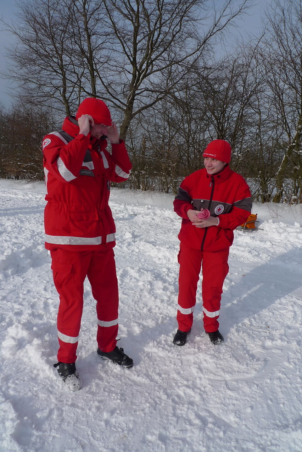 Wie jedes Wochenende in diesem relativ schneereichen und schneesicheren Eifelwinter 2008/2009 war die Rotkreuz-Bergwacht aus dem Kreis Euskirchen wieder mit dabei und stellte die Rettung verletzter Personen aus dem Hang sicher.
