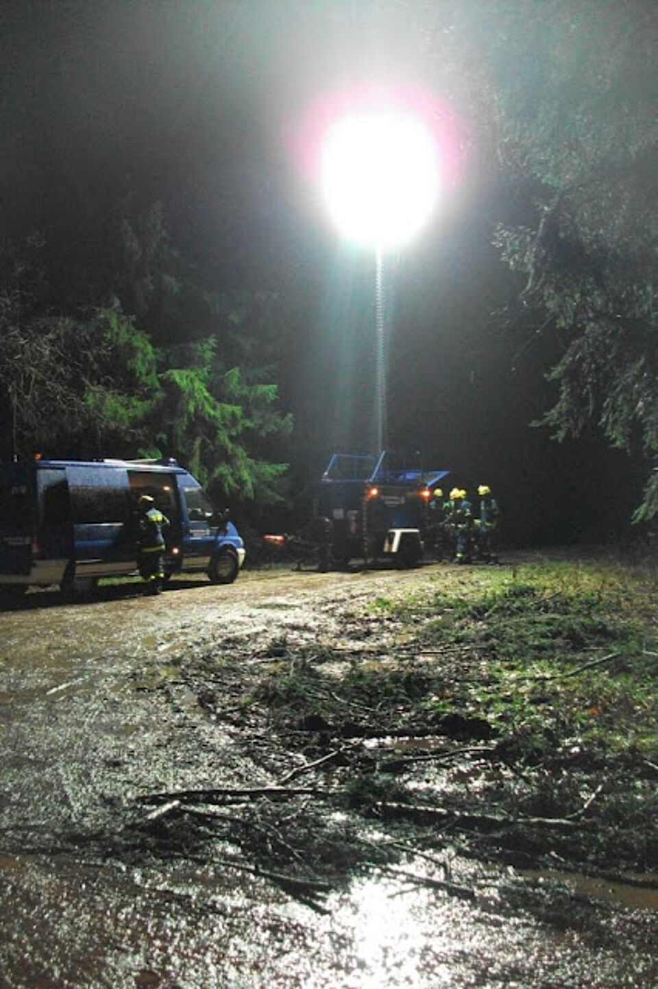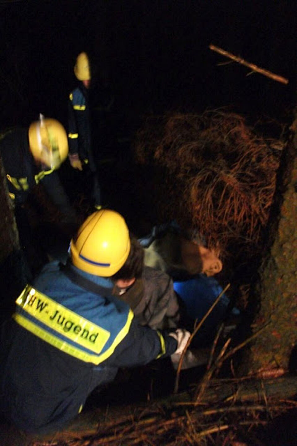 Nach dem Fund führten die Rettungshundeführer eine Erstversorgung durch. Die schwerpunktmäßige Aufgabe des THW war die technische Rettung der Verletztendarsteller, das Ausleuchten der Einsatzstellen und die Sicherstellung von Stromverbindungen. Dunkelheit und äußerst widrige Witterungsverhältnisse machten die Arbeit der vielen ehrenamtlichen Kräfte nicht leichter. Umso realistischer konnten potenzielle Einsatzmittel auf „Herz und Nieren“ getestet werden.