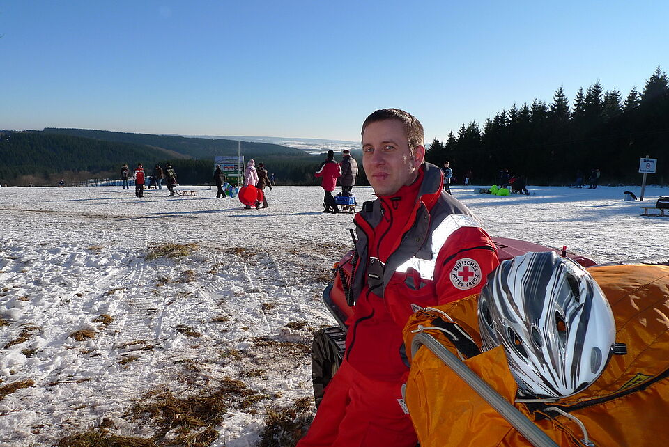 Bild DRK ZR | Bergwachtmann Marco Gross ist beim Roten Kreuz für den winterlichen Sanitätsdienst zuständig, aber am Samstag waren nur einige wenige Blessuren ambulant zu behandeln. Und das war auch gut so, wie Rotkreuzler und Wintersportler unisono befanden.