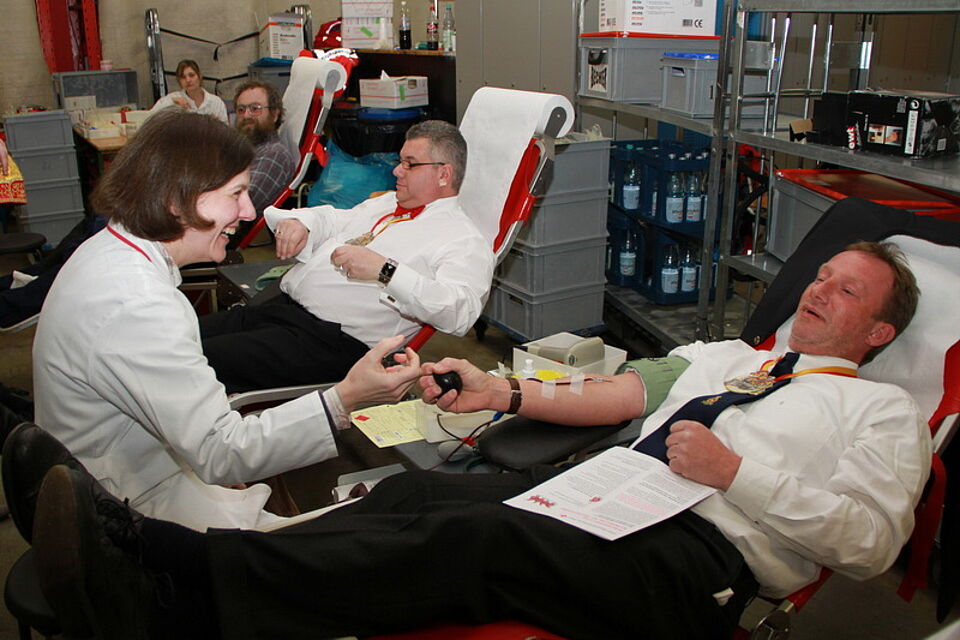 Nach dem Arztgespräch wurde der Prinz von der Ortsvorsitzenden des Roten Kreuzes Euskirchen, Dagmar Harder, und der Blutspendebeauftragten, Edeltraud Engelen, zur Liege gebracht. Prinz Michael IV ließ die Blutabnahme recht geduldig über sich ergehen und lieferte sich mit seinen Begleitern, getreu des diesjährigen Mottos „Et Laache kann os keene vebeede“, zwischendurch einen amüsanten Schlagabtausch. „Warum wird denn jetzt mein Fußteil hochgestellt?“, fragte er beispielsweise. Und Guido Schmitt antwortete: „Weil sie das Blut aus deinen Beinen auch noch haben wollen.“