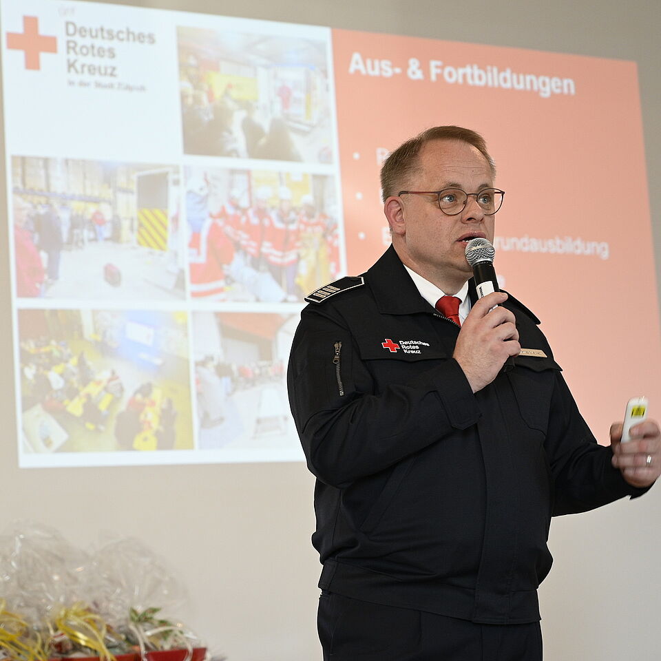 Einen Bericht auf internationaler Ebene lieferte Christof Johnen vom Bundesverband. Er erzählte, wie man beispielsweise bereits seit 45 Jahren mit dem sudanesischen Roten Kreuz zusammenarbeite und zeigte so, wie aufwendig und langwierig viele Einsätze seien. Besonders wichtig seien dabei stets Unparteilichkeit und Abstimmung mit allen Konfliktparteien.