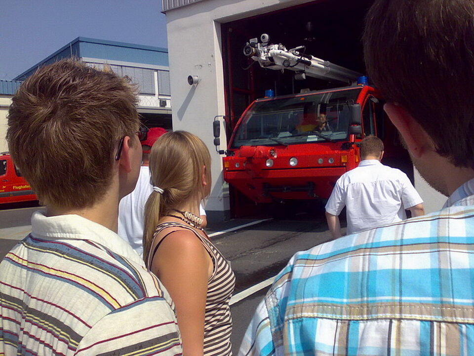 Kall - Aktive Rotkreuzler besichtigen die Flughafenfeuerwehr