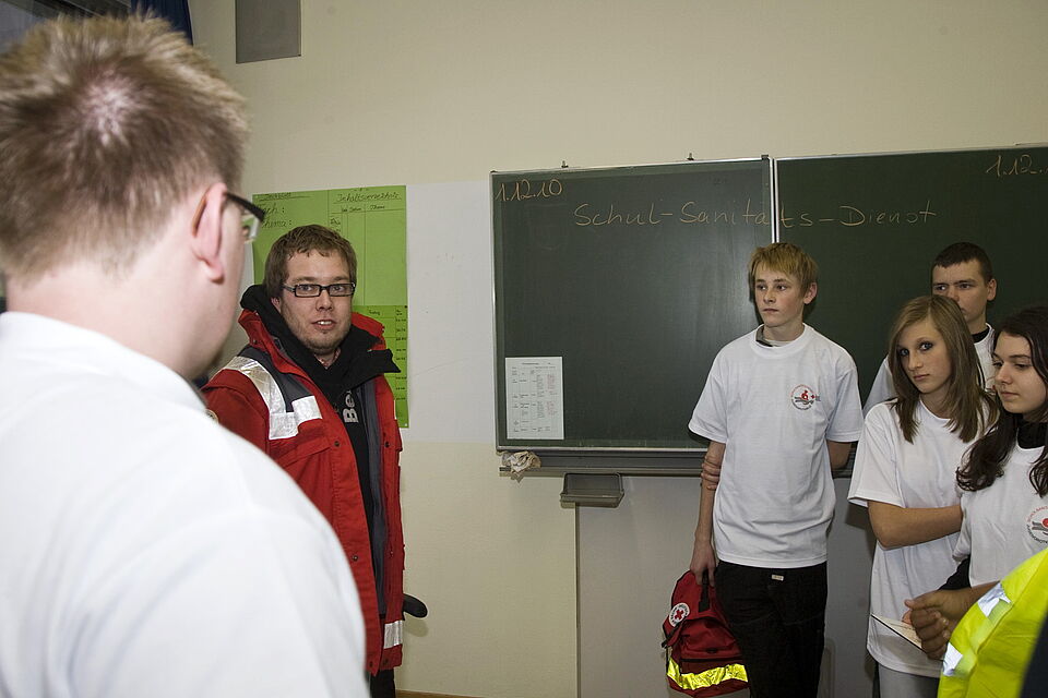 Den hatte nämlich das Rote Kreuz zum Rettungssanitäter ausgebildet, und sein Wissen gibt er jetzt an seine Schüler weiter.