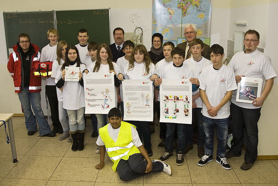 Schulsanitäter der Kaller Hauptschule bekamen jetzt vom Roten Kreuz ein Ausrüstungs- und Ausbildungspaket.