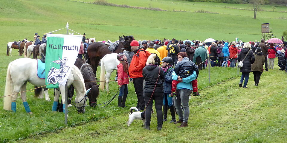 Nach nur 42 berittenen Pilgern im vergangenen Jahr machte sich schon vor Abritt um 11.15 Uhr große Erleichterung bei Robert Ohlerth, Gerhard Mayr-Reineke und ihrem Team vom Sachausschuss Sankt-Georgsritt des Kallmuther Pfarrgemeinderates breit. Aus allen Himmelsrichtungen ritten kleine Trupps und Einzelreiter auf den temporären Wallfahrtsort im Schatten des Mechernicher Bleibergs zu.