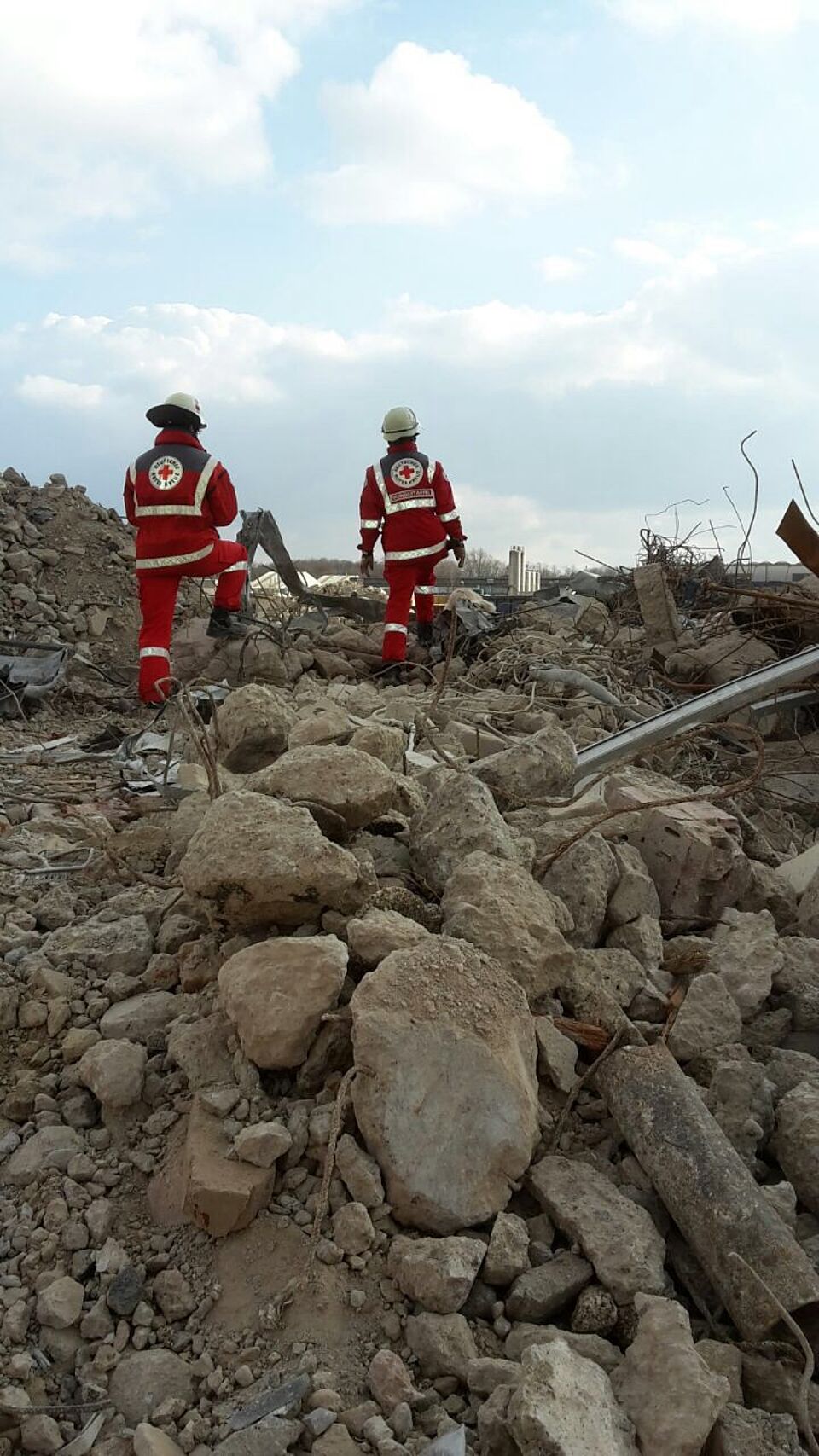 Die Suche nach Verschütteten, zum Beispiel nach einem Gebäudeeinsturz, ist eine weitere Suchspezialität der Rotkreuz-Hunde, neben der Suche nach Vermissten in beispielsweise Waldgeländen oder Grünanlagen.