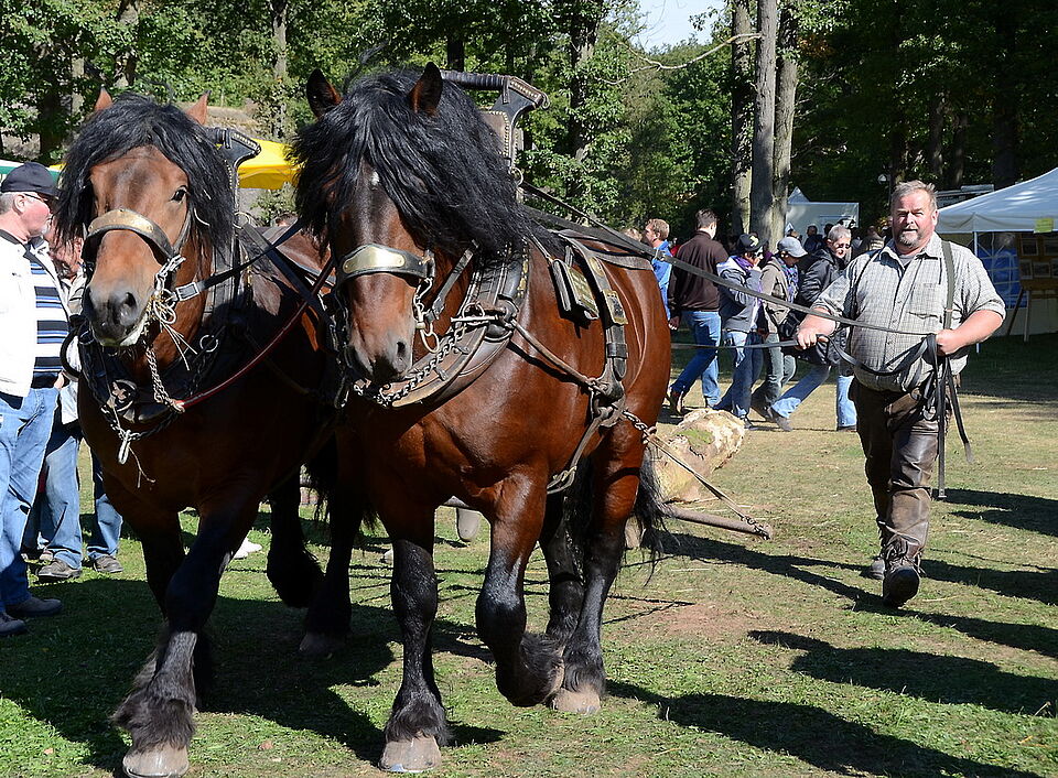 Mit dabei waren Ardenner, Glanvieh , Percherons, Belgier und Rheinisch-Deutsches Kaltblut, auch das Brabanter Kaltblut „Irko“, das unlängst bei der Rückepferde-Meisterschaft in Monschau Reservesieger geworden war.