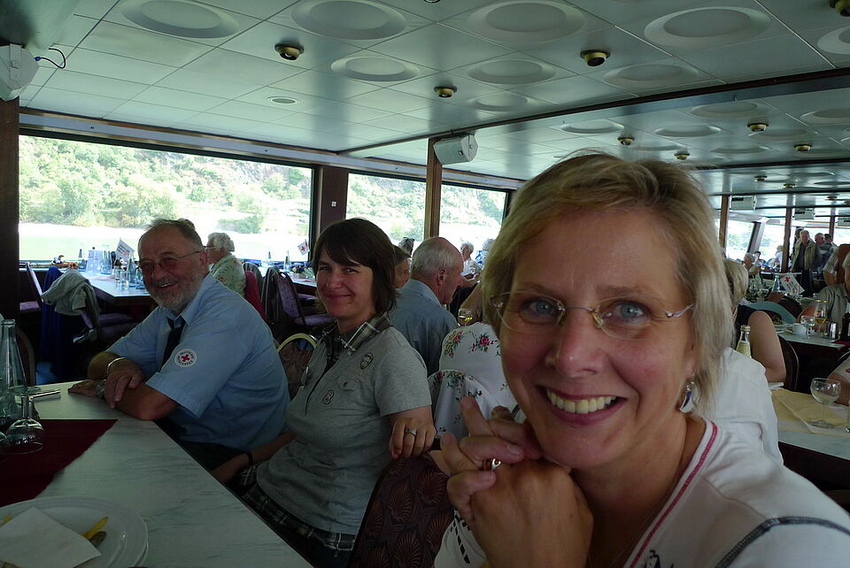 Von Koblenz ging es dann mit dem Schiff den Rhein hinauf bis zur Loreley. Bei munteren Klängen und strahlendem Sonnenschein waren alle Gäste bei bester Laune.