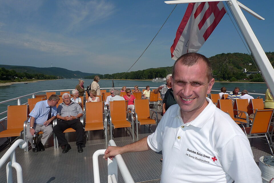 Kreis Euskirchen - Im ganzen Kreisgebiet waren Busse unterwegs, um die reiselustigen Senioren für die Rotkreuz-Rheinschifffahrt einzusammeln.