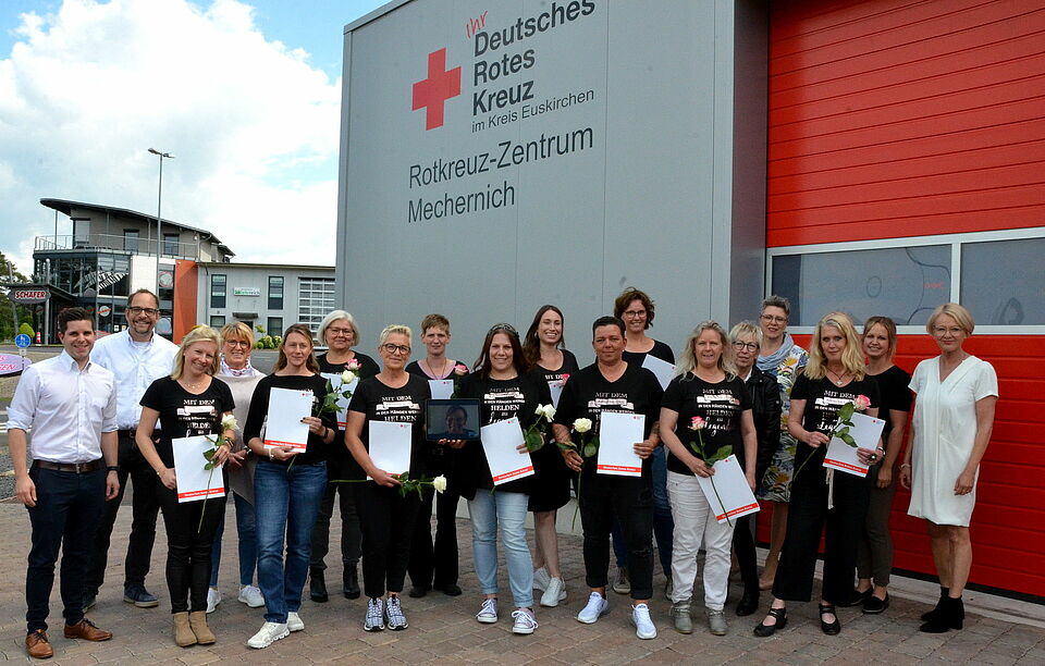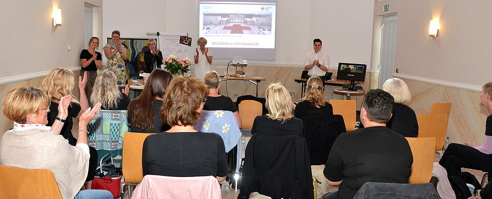 Alle zwölf Teilnehmerinnen konnten ihre Ausbilder vollends überzeugen. Nachdem sie zum Abschluss eine Facharbeit vorgelegt und präsentiert hatten, erhielten sie ihre Zertifikate. Feierstimmung ließ im Rotkreuz-Zentrum Mechernich nicht länger auf sich warten.