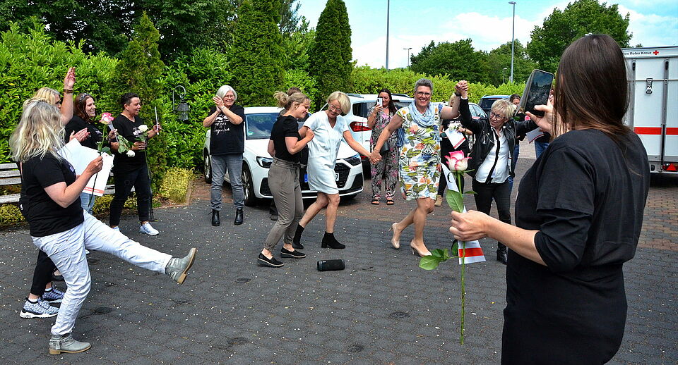 Heike Iven, die Leiterin der Rotkreuz-Familienbildung, Daniel Larres, der Leiter der Rotkreuz-Bildungsakademie des Kreisverbandes, und das restliche Orga-Team hatten das Qualifizierungskonzept im Vorfeld gemeinsam entwickelt. Zu Gast war am „Abschlusstag“ auch der Zuständige für die Kitas des Roten Kreuzes im Kreis, Ralf Krutwig, sowie Edeltraut Engelen, die sich weiterhin ehrenamtlich und mit Herzblut für das Rote Kreuz engagiert.
