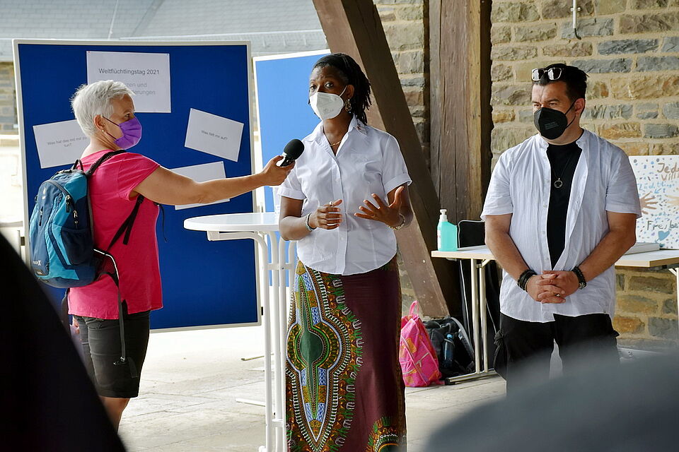 Ihnen wird in Vogelsang Raum gegeben. Langfristig soll der Workshop den geflüchteten Menschen helfen, ihre Interessen wieder eigenmächtig, selbstverantwortlich und selbstbestimmt zu vertreten und sich gegenseitig zu stärken. „Die Menschen werden wieder in ihrer Individualität als Mensch gesehen und anerkannt – nicht als Flüchtling“, bringt es Sylvie Dayiku Pomame, von der Integrationsagentur, Servicestelle Antidiskriminierungsarbeit, des DRK-Kreisverbands auf den Punkt.