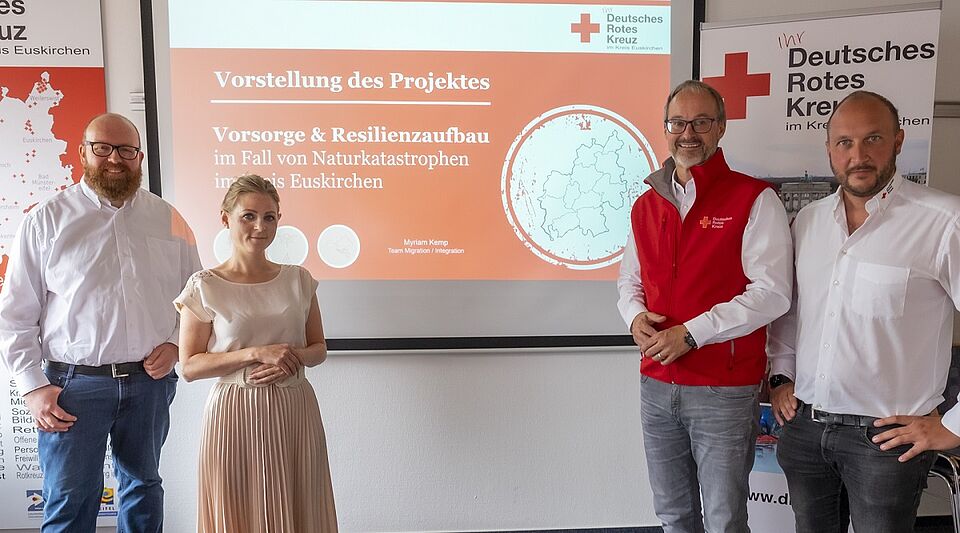 Kreis Euskirchen – Wenn die Katastrophe eingetreten ist, dann ist es schon zu spät. Dann ertönen die Sirenen und keiner weiß so recht, was die unterschiedlichen Tonabfolgen bedeuten. Dann fällt der Strom aus und die Taschenlampe ist einfach nicht zu finden. Noch dazu sind die Vorräte nicht aufgefüllt und der Erste-Hilfe-Kasten ist mal wieder nicht an seinem Platz. Damit die Menschen im Kreis Euskirchen vorbereitet sind auf das Unvorhersehbare, hat das Deutsche Rote Kreuz (DRK) im Kreis Euskirchen jetzt das Projekt „Vorsorge & Resilienzaufbau im Fall von Naturkatastrophen“ vorgestellt.