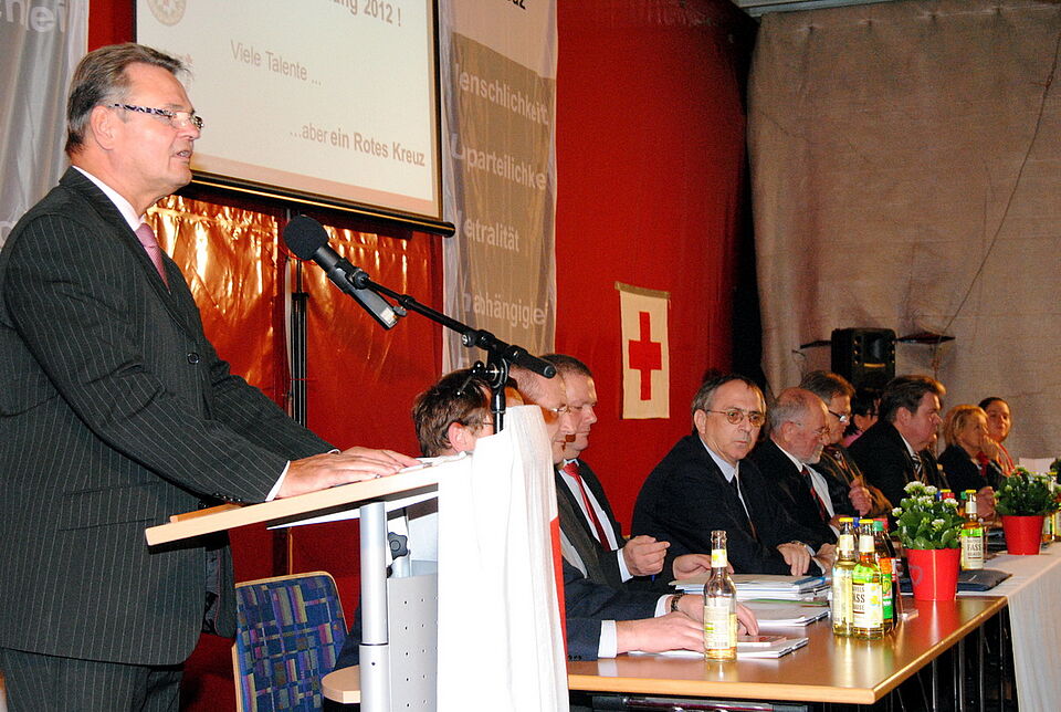 Bei einer Enthaltung sprach sich die Versammlung geschlossen für die Jahresrechnung und den Haushaltsplan 2013 von Schatzmeister Gert Fink aus. Trotz der angespannten finanziellen Situation, die vor allem auf gestiegene Kfz- und Energiekosten sowie auf sinkende Spenden- und Mitgliedsbeiträge zurückzuführen war, schaut Fink zuversichtlich ins kommende Jahr. Nicht zuletzt durch die Betreuung von mittlerweile mehr als 1.400 Kindern in den 29 Rotkreuz-Kitas und in sechs Rotkreuz-Schulbetreuungen prognostiziert Schatzmeister Fink für 2013 schwarze Zahlen. „Äußerste Zurückhaltung“, so Fink, sei bei der Übernahme neuer Aufgaben geboten. Darüber hinaus soll die Einführung eines zentralen Bestellwesens und Beschaffungsmanagements zusätzliche Entlastung bringen.