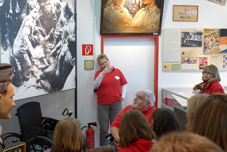 „Wir stellen die größte Gruppe, die nicht aus Berlin oder Brandenburg kommt“, berichtete Zimmermann nicht ohne Stolz. In Euskirchen hatte Daniel Hermanns das Lager geöffnet und die Rotkreuzler mit einheitlichen Jacken eingekleidet. „Als roter Block“, sagte Zimmermann, wolle man in Berlin auftreten. „Das hat schone eine Aussage. Damit wir mal zeigen, aus welchem Teil des Landes ein Zusammenhalt im Roten Kreuz kommt.“ Am Brandenburger Tor erhielten die Rotkreuzler noch einmal Sweatshirts und Kappen, um auf dem Foto ein einheitliches Bild zu präsentieren. Ursprünglich habe man mit 20 bis 30 Rotkreuz-Helfern aus dem Kreis Euskirchen gerechnet, so Zimmermann. Schließlich aber meldeten sich über 60 Personen an, vor allem aus dem Jugendrotkreuz. Auf dem Programm des Berlin-Besuchs stand bei den Eifelern auch der Besuch des dortigen Rotkreuz-Museums und des „Friedenstisches“ in Form des roten Kreuzes im Rotkreuz-Generalsekretariat. Aus Anlass des Jubiläums wird es auch im Kreis Euskirchen im Laufe des Jahres Aktionen geben, kündigte Zimmermann an.