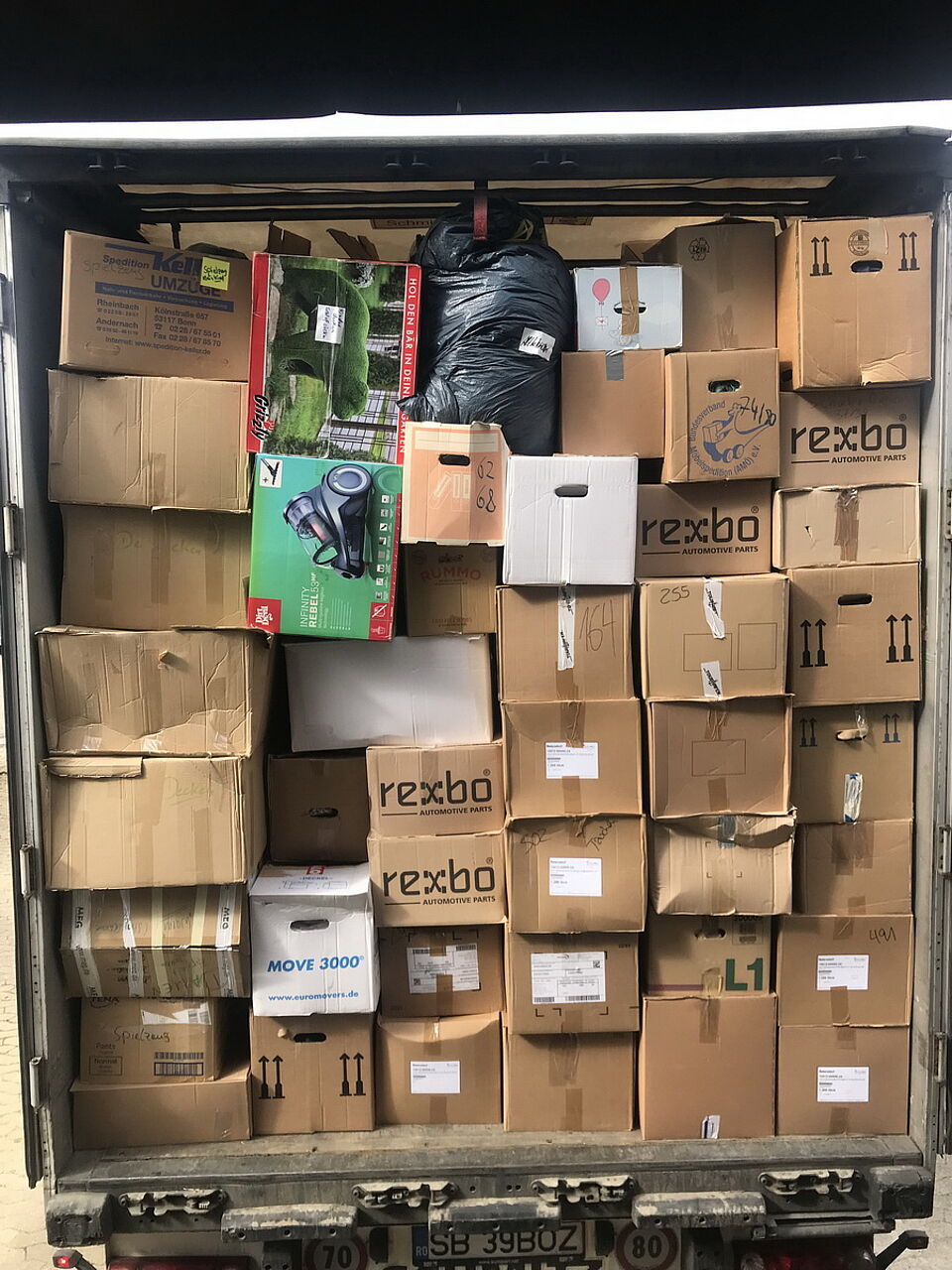 Neben dem Roten Kreuz im Kreis Euskirchen und „Rumänien Sunshine“ selbst steuerten auch die Feuerwehren Wülfrath und Bad Neuenahr/Ahrweiler Hilfsgüter bei, die sie als Neuware von einheimischen Firmen gespendet bekamen.
