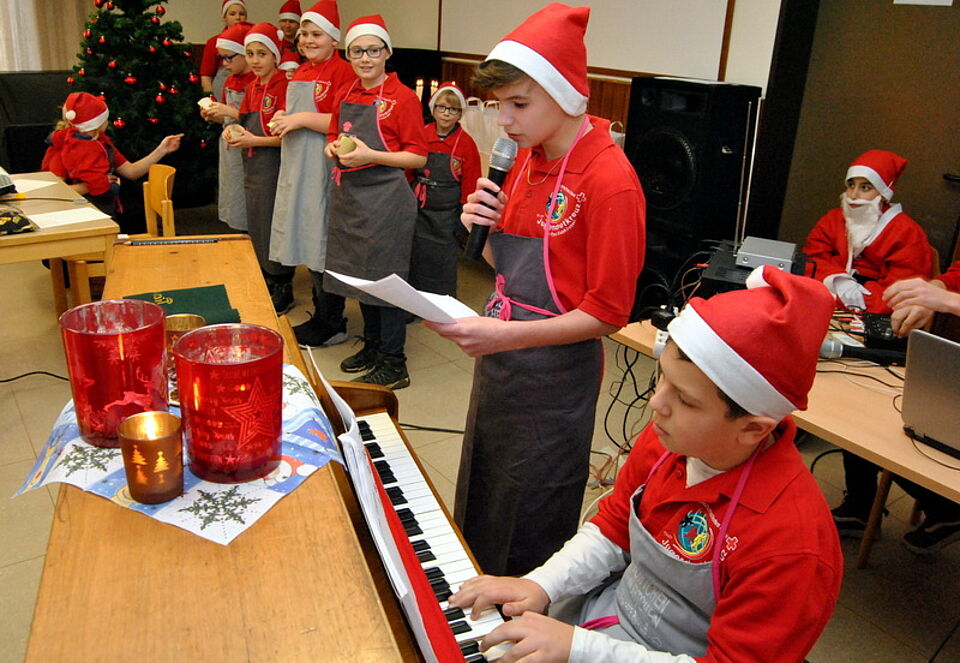 Die Plätzchen, die später an die Senioren verteilt wurden, hatten die Kinder auch in diesem Jahr mit professioneller Unterstützung backen dürfen. Bereits seit mehreren Jahren lädt Matthias Ludwigs, Inhaber der Kölner Patisserie „Törtchen, Törtchen“, das Mechernicher Jugendrotkreuz in seine Backstube ein. Unter seiner Anleitung kneteten die Kinder Plätzchenteige und backten kiloweise Spitzbuben, Kokosmakronen, Vanillekipferl und Zimtsterne, in deren Genuss nun die Gäste der Weihnachtsfeier kamen.